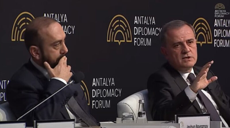 Հայաստանի Սահմանադրությունը փոխելու՝ Բաքվի նախապայմանի շուրջ արտգործնախարարներ Արարատ Միրզոյանն ու Ջեյհուն Բայրամովը բանավեճի են բռնվել Անթալիայի դիվանագիտական ֆորումի շրջանակում ընթացող քննարկմանը։
