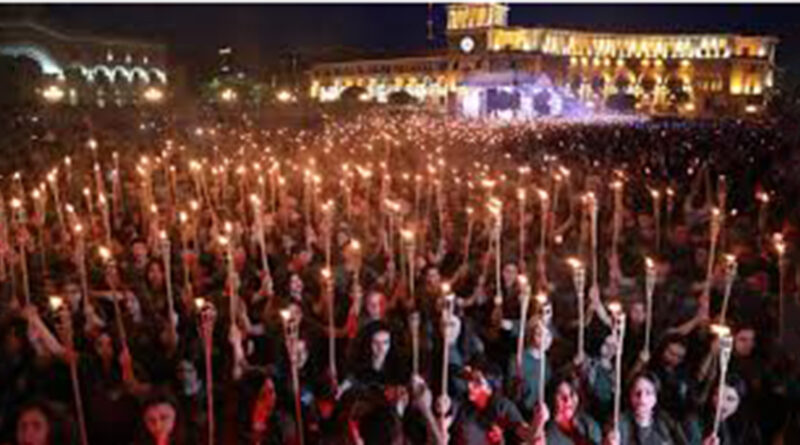 Հիշեցնենք, որ երթից առաջ, որպես բողոքի նշան, ակտիվիստները ավանդաբար այրում են Թուրքիայի եւ Ադրբեջանի դրոշները, ապա բոլորը շարժվում են Ծիծեռնակաբերդ՝ 1915 թվականին Եղեռնին զոհ գնացած հայրենակիցների հիշատակին հարգանքի տուրք մատուցելու: