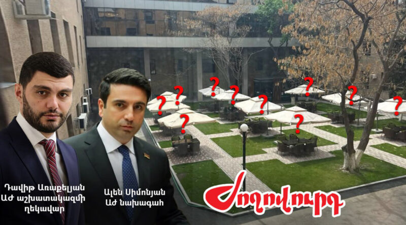 «Ժողովուրդ» օրաթերթը գրում է. ««Ժողովուրդ» օրաթերթը գրել էր, որ Ալեն Սիմոնյանի ղեկավարած ԱԺ-ն բացօթյա սրճարանի միայն բարի համար 11,5 մլն (մոտ 30 հազար ԱՄՆ դոլար)դրամ է ծախսել, 3-4 անգամ տոմետներ շարելու պայմանագիր է կնքել և երկու անգամ ավելի աթոռ ու սեղան գնել: