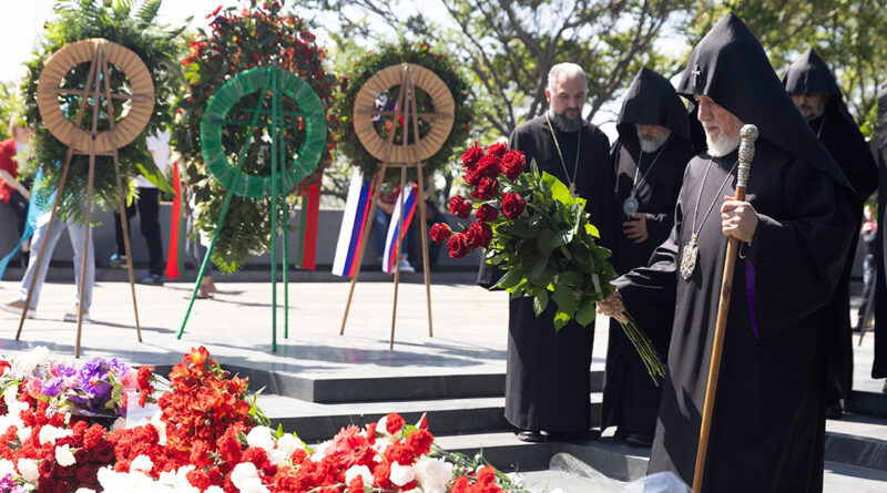 Անհայտ զինվորի հուշակոթողի մոտ ծաղկեպսակի զետեղումից հետո Վեհափառ Հայրապետն աղոթք բարձրացրեց առ Աստված հայրենիքի համար իրենց կյանքն ընծայաբերած քաջորդիների հոգիների հանգստության և խաղաղության համար: