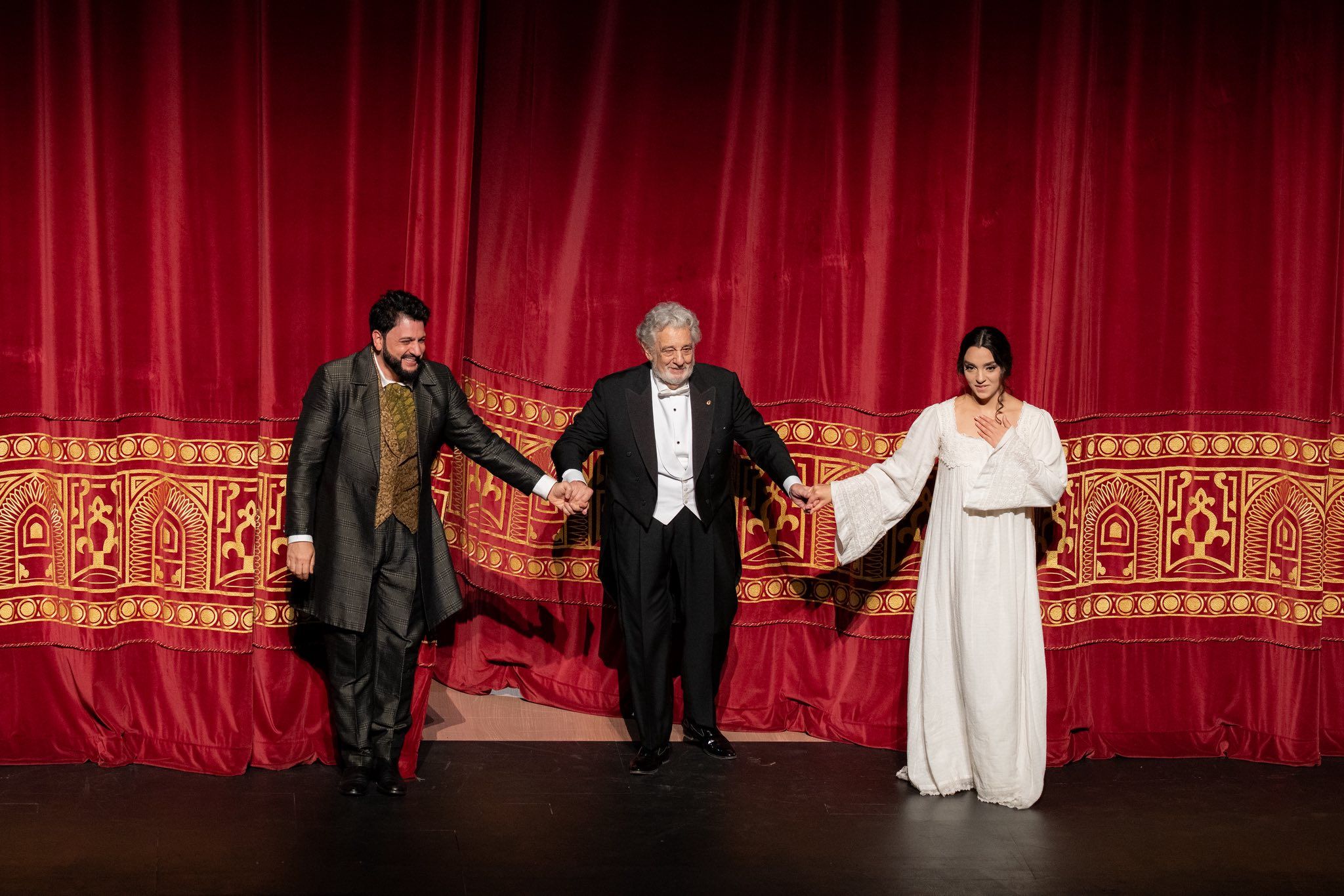 Իսպանացի օպերային (տենոր) երգիչ, դաշնակահար, դիրիժոր Պլասիդո Դոմինգոն՝ Ջուլիաննա Գրիգորյանի և ադրբեջանցի օպերային երգիչ Յուսիֆ Էյվազովի հետ Լուսանկարը՝ Պլասիդո Դոմինգոյի ֆեյսբուքյան էջից։