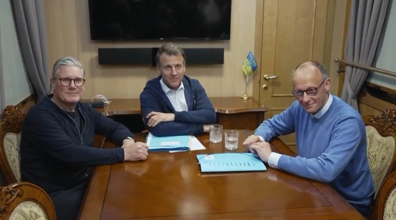 Ռուսաստանի ԱԳՆ պաշտոնական ներկայացուցիչ Մարիա Զախարովան, մեկնաբանելով Մակրոնի և Մերցի մասնակցությամբ գնացքի տեսանյութը, նշել է, որ 2022թ. արևմտյան դեսպաններից մեկին հարցրել է, թե Արևմուտքն ինչու է զենք մատակարարում թմրամոլ Զելենսկուն։ Հարցին նա ստացել է պատասխան, որ ԵՄ- ի համար դա նորմալ երևույթ է։