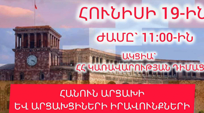 Հունիսի 19-ին, ժամը 11:00-ին բոլորս՝ մեկ մարդու նման, հավաքվում ենք կառավարության շենքի դիմաց, ցույց տալու, որ Արցախցու արժանապատիվ կյանքի իրավունքը սակարկման ենթակա չէ, և ոչ ոք չի կարող ոտնահարել այն։