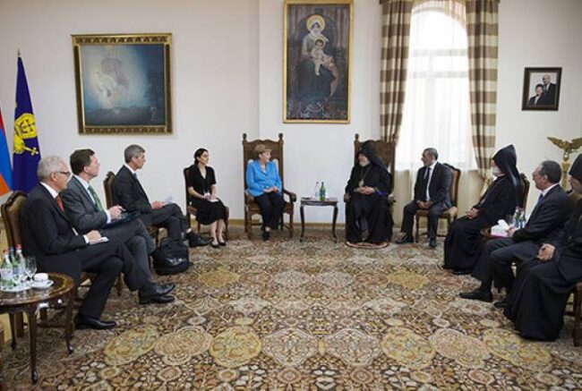 Փոխարենը, Մերկելը հանդիպել է կաթողիկոսին Մայր Աթոռում՝ 2018 թվականի օգոստոսին ՀՀ կատարած պաշտոնական այցի շրջանակում։