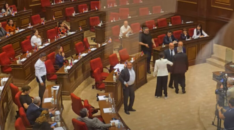 Հովիկ Աղազարյանի ելույթից հետո իրավիճակը թեժացավ, նա շիշը նետեց ՔՊ-ի ուղղությամբ. Արշակյանը դուրս հրավիրեց
