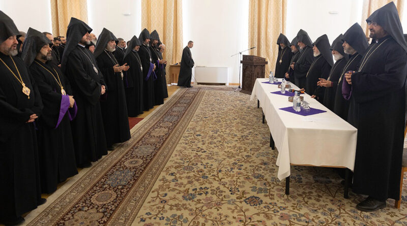 Սիրելի հոգևոր հայրեր, աշխարհում և մեր տարածաշրջանում ընթացող զարգացումները լուրջ խնդիրների առջև են կանգնեցրել մեր երկիրն ու ժողովրդին: Մենք խորապես մտահոգված ենք, որ փոխանակ համայն հայությանը համախմբելու, հասարակության մեջ անջրպետները վերացնելու՝ Հայաստանի իշխանությունները շարունակում են արշավ իրականացնել Եկեղեցու նկատմամբ: Որքան էլ փորձ կատարվի Եկեղեցու դեմ քայլերը ներկայացնելու որպես առանձին եկեղեցականների հանդեպ ուղղված գործողություններ, այսուհանդերձ, ակնհայտ է, որ դրանք կրում են համակարգային բնույթ, և թիրախավորված է բուն Եկեղեցին», – ասաց Վեհափառ Հայրապետը՝ նկատելով, որ այդ ամենի մասին են վկայում վերջին տարիներին Եկեղեցու առաքելության համար տարբեր ոլորտներում հարուցված խոչընդոտներն ու արհեստական դժվարությունները: