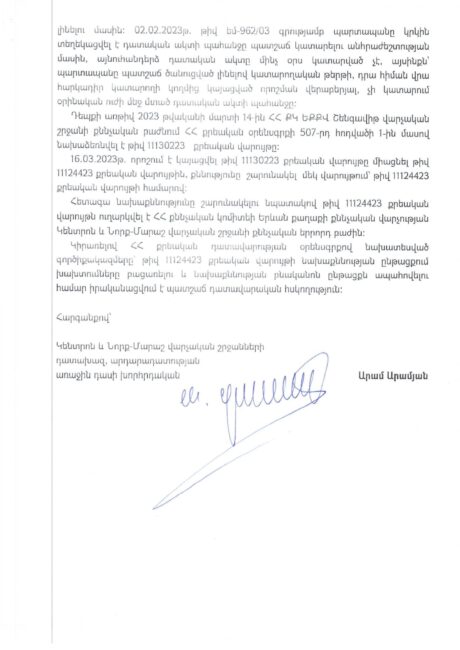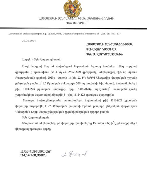 Փաստորեն, գլխավոր դատախազությունը քաջալերում է ԱԲ-ին իր անգործությամբ, այն դեպքում, երբ դատարանի վճռի չկատարումն այլևս քրեական հանցագործություն է որակվում։