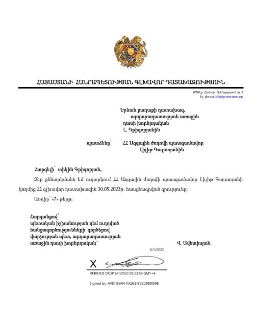 Եվ սա ոչ միայն արդարադատության բռնաբարում է, Գլխավոր դատախազի ինստիտուտի վարկաբեկում և ակնհայտ անգործություն, այլև ավելի քան ուղիղ ապացույց, որ Գլխավոր դատախազը շարունակում է լինեն ռեժիմի շահերը սպասարկող վարչապետի օգնականը, իսկ դատախազությունը սոսկ ընդդիմադիրներին քաղաքական ռեպրեսիայի ենթարկող, վախի մթնոլորտ տարածող, քաղաքական պատվեր կատարող գործիք է։