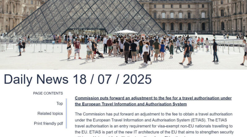 Եվրոպական հանձնաժողովը պատրաստվում է գրեթե եռապատկել ԵՄ-ում ճանապարհորդության թույլտվության վճարը Եվրոպական ճանապարհորդական տեղեկատվության և թույլտվության համակարգի (ETIAS) շրջանակներում։ Այն կգործարկվի 2026 թվականի վերջին։ Այս մասին ասվում է Եվրոպական հանձնաժողովի հայտարարության մեջ։