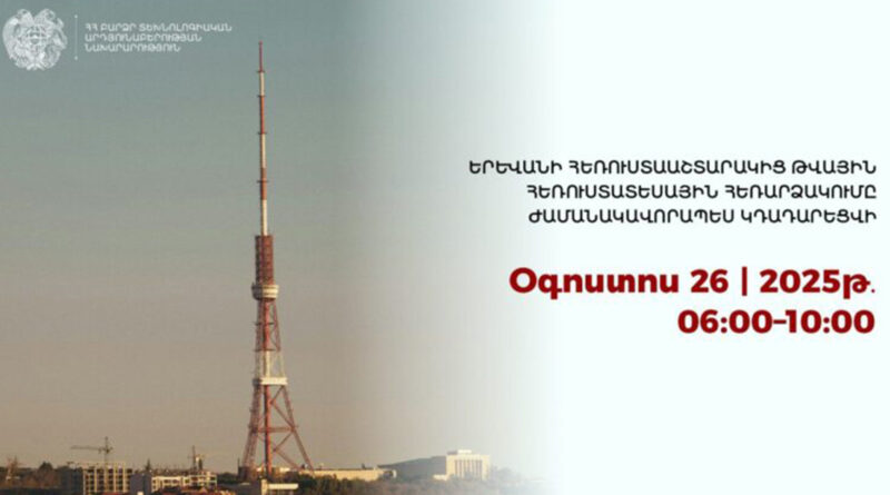 Երևանի հեռուստաաշտարակից թվային հեռուստատեսային հեռարձակումը կդադարեցվի