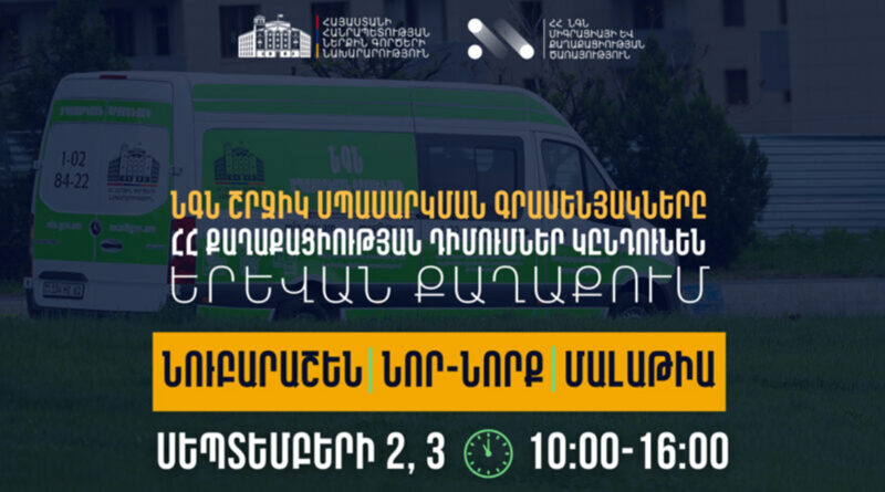 ՆԳ նախարարությունից հայտնում են, որ նախարարի հրամանով՝ շրջիկ սպասարկման գրասենյակները ԼՂ-ից բռնի տեղահանված անձանցից ՀՀ քաղաքացիության ստացման դիմումներ կընդունեն նաև Երևանում։