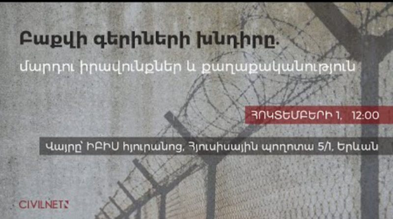 ՍիվիլՆեթը կազմակերպում է հանրային քննարկում Բաքվում պահվող հայ գերիների և պատանդների իրավունքների թեմայով։