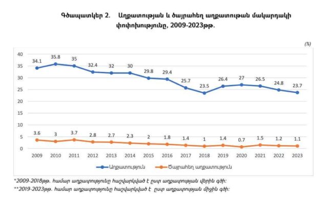 Այսպես՝ Հայաստանում 2007-ից 2023 թվականների աղքատության մակարդակի ցուցանիշների իրական պատկերը հետևյալն է.