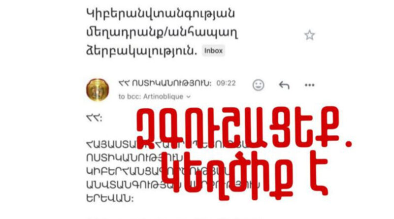 Տարբեր անհատների և ընկերությունների էլեկտրոնային փոստերին ոստիկանության անունից ուղարկվում են կեղծ հաղորդագրություններ։