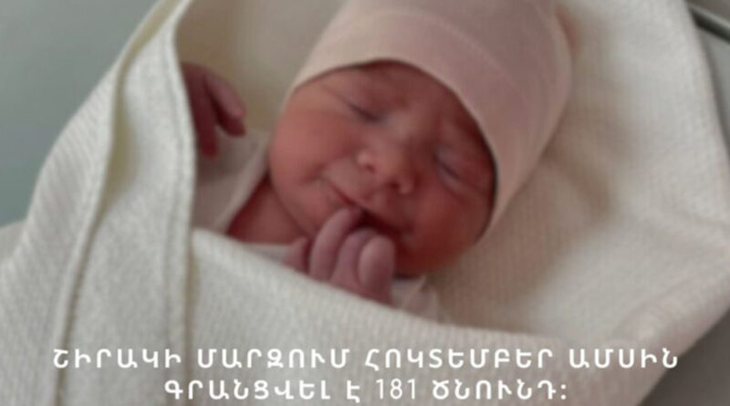 Հասարակություն Շիրակի մարզում նոյեմբերին ծնվել է 181 երեխա 01.12.2025 0 min read Շիրակի մարզի ծննդօգնություն իրականացնող բուժհաստատություններում 2025 թվականի նոյեմբեր ամսին ծնվել է 181 երեխա։ 96 տղա է լույս աշխարհ եկել, 85՝ աղջիկ։ Այս մասին տեղեկացնում է ՀՀ Շիրակի մարզպետի աշխատակազմը։
