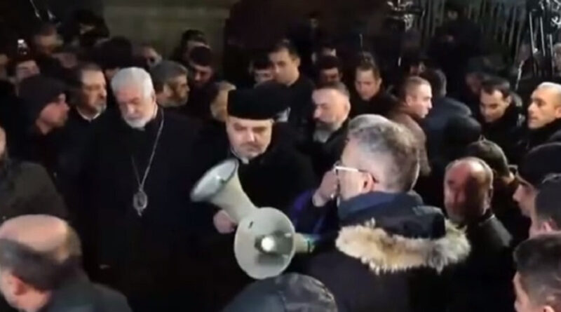 Հիշեցնենք, որ այսօր Նիկոլ Փաշինյանի հետ հանդիպած եպիսկոպոսները հավաք էին կազմակերպել Մայր Աթոռում՝ Կաթողիկոսի հրաժարականի պահանջով։ Նրանք կարճ ժամանակով եկան Մայր տաճար, որտեղ հավաքվել էին Վեհափառ Հայրապետին սատարող քաղաքացիները։ Նրանք հայտնեցին, որ Կաթողիկոսի հրաժարականի պահանջով նամակ են հանձնել քարտուղարություն, ապա ԱԱԾ-ի ուղեկցությամբ միկրոավտոբուսով հեռացան։