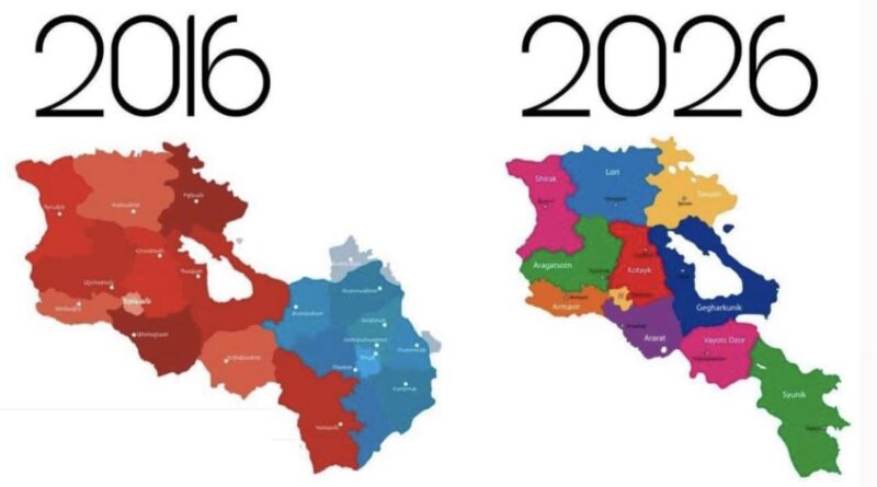 ՀՀԿ ԵԿ ղեկավար Հենրիխ Դանիելյանը գրել է. «Թույլ տվեք օրվա թրենդին միանալ ոչ թե իմ 2016-ի և 2026-ի լուսանկարներով, այլ Սերժ Սարգսյանի ղեկավարած Հայաստանի և այսօրվա Հայաստանի տարբերությունները մատնանշող այս քարտեզը հրապարակելով՝ որպես «մինչև և հետո»։