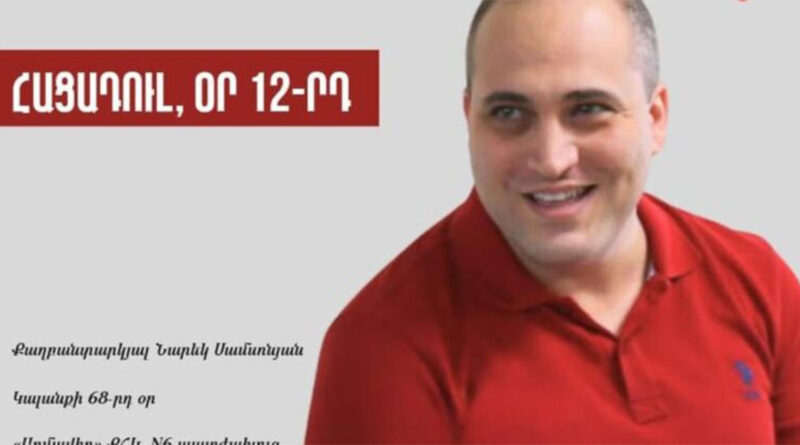 Հիշեցնեմ, որ Նարեկ Սամսոնյանի մոտ առկա են լուրջ առողջական խնդիրներ և հունվարի 15-ին «Արմավիր» ՔԿՀ այց կատարած բժիշկը շտապ վիրահատական միջամտություն է ցուցել։ Առողջական վիճակը վատանում է հացադուլի հետևանքով, իսկ օրգանիզմի հյուծման գործընթացն իր հերթին արագանում է՝ շտապ վիրահատական միջամտության անրաժեշտությամբ պայմանավորված։