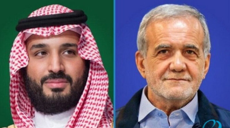 Սաուդյան Արաբիայի թագաժառանգ Մուհամմեդ բին Սալմանի հետ հեռախոսազրույցի ընթացքում Իրանի նախագահ Մասուդ Փեզեշքիանը քննարկել է միջազգային և տարածաշրջանային վերջին զարգացումները, ինչպես նաև Իրանի ներսում տեղի ունեցած վերջին զարգացումները, հաղորդել է Eurasia Today-ը։
