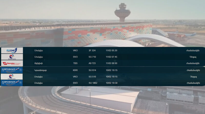 Չեղարկվել է փետրվարի 10-ին և 11-ին նախատեսված Մոսկվա-Երևան ուղղության միանգամից երկու չվերթ։ Այս մասին են վկայում «Զվարթնոց» միջազգային օդանավակայանի առցանց ցուցատախտակի տվյալները, փոխանցում է Sputnik Արմենիա-ն։