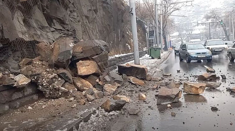 Մյասնիկյան պողոտայում ժայռաբեկորները պոկվել և ընկել են երթևեկելի հատվածին (տեսանյութ)