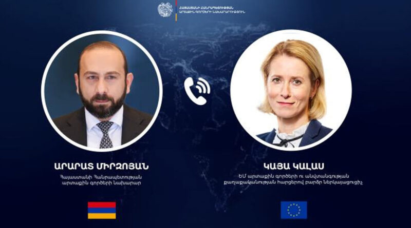 Հայաստանի Հանրապետության ԱԳ նախարար Արարատ Միրզոյանը հեռախոսազրույց է ունեցել Եվրոպական հանձնաժողովի փոխնախագահ, ԵՄ արտաքին գործերի ու անվտանգության քաղաքականության հարցերով բարձր ներկայացուցիչ Կայա Կալասի հետ։