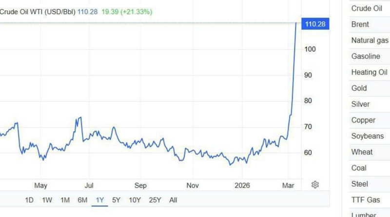 Մերձավոր Արևելքում ծավալված ռազմական գործողությունների ֆոնին նավթի գինը միջազգային շուկաներում շարունակում է աճել։ Նավթի գինը հատել է 110 դոլարի սահմանը: