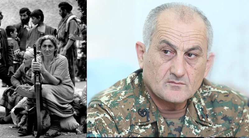 Հ.գ.-1992-ին արված այս լուսանկարում տուն ու տեղ կորցրած արցախցի կինն է, ով անլուր տառապանքներից հետո ոչ միայն չհուսալքվեց, այլև զենքը ձեռքին նորից վերադարձավ հարազատ օջախ… Վերադարձավ, որովհետև զգաց, որ մենակ չէ…