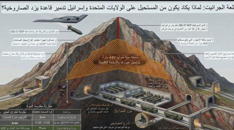 ԱՄՆ-ի ամենահզոր հակաբունկերային ռումբը՝ GBU-57 Massive Ordnance Penetrator, տեսականորեն կարող է խոցել ավելի քան 60 մետր բետոն, ինչը զգալիորեն քիչ է նշված խորությունից։