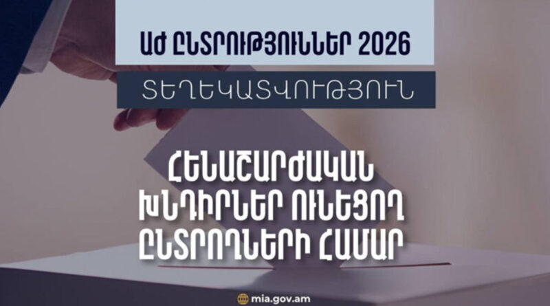 «Դիմումները կընդունվեն ընտրատեղամասերի ձևավորումից հետո։ Հետևապես՝ իրենց տեղամասային կենտրոնում քվեարկելու անհնարինության դեպքում տեղաշարժման (հենաշարժական) դժվարություններ ունեցող ընտրողները քվեարկության օրվանից ոչ ուշ, քան 12 օր առաջ՝ 2026 թվականի խորհրդարանական ընտրությունների դեպքում՝ մինչև մայիսի 26-ը ժամը 14:00-ն, կարող են լիազոր մարմին դիմում ներկայացնել՝ ըստ հաշվառման վայրի ընտրողների ցուցակից ժամանակավորապես դուրս գալու և իրենց նախընտրած վայրի մատչելի ընտրական տեղամասի ընտրողների ցուցակում ընդգրկվելու մասին՝ նշելով տեղաշարժման (հենաշարժական) դժվարություններ ունեցող անձանց համար մատչելի ընտրական տեղամասի համարը։