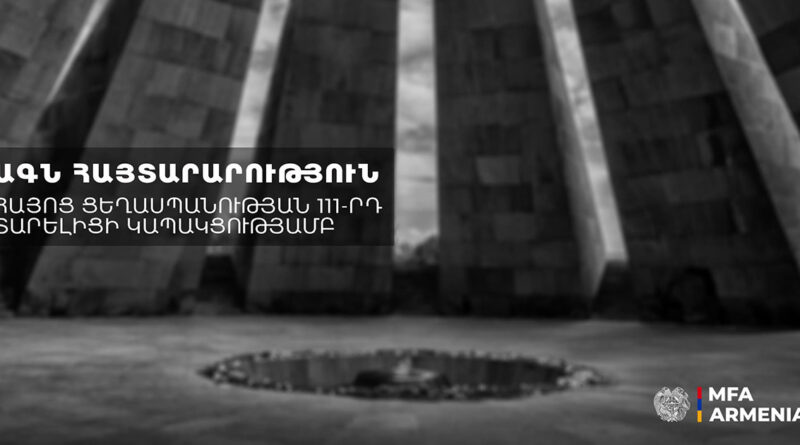 ՀՀ ԱԳՆ հայտարարությունը Հայոց ցեղասպանության 111-րդ տարելիցի կապակցությամբ