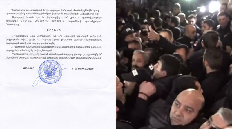 Արմավիրի մարզի առաջին ատյանի ընդհանուր իրավասության դատարանը (դատավոր Սերժ Ռուշանյան) որոշել է բավարարել բողոքը՝ վարույթի հանրային մասնակիցներին ՊԱՐՏԱՎՈՐԵՑՆԵԼՈՎ ՆԱԽԱՁԵՌՆԵԼ ՔՐԵԱԿԱՆ ՎԱՐՈՒՅԹ և իրականացնել նախաքննություն: