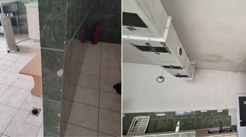 – առաստաղը եղել է ոչ նորոգ, առկա են եղել բորբոսի, կեղտի կուտակումներ և մասնիկների թափվելու վտանգ,
