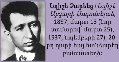 Ավելին1897 թ․ Արևմտյան Հայաստանի Կարս քաղաքում ծնվել է հայ բանաստեղծ, գրող, թարգմանիչ, հրատարակիչ Եղիշե Աբգարի Սողոմոնյանը` Եղիշե Չարենցը։ Գուրգեն Մահարին
