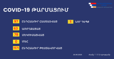 ԱվելինՀայաստանում հունիսի 20-ի դրությամբ հաստատվել է կորոնավիրուսով վարակման 551 նոր դեպք, վարակվածների ընդհանուր թիվը հասել է 19 708-ի: Ինչպես տեղեկացնում