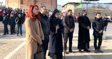ԱվելինՍտեփանակերտի Սուրբ Աստվածամոր Հովանու մայր տաճարի բակում Սուրբ Ծննդյան օրը Հայաստանի պետական սիմֆոնիկ նվագախմբի կամերային կազմը (դիրիժոր՝ Սերգեյ Սմբատյան), Արցախի