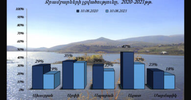 ԱվելինՀիդրոօդերևութաբանության և մոնիթորինգի կենտրոնը ներկայացրել է ջրամբարների լցվածությունը օգոստոսի 10-ի դրությամբ։ Նախորդ տարվա նույն օրվա համեմատությամբ Ախուրյանի ջրամբարում ջրի ծավալը