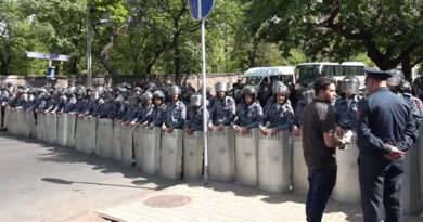 Ոստիկանները ԱԺ շենքի մոտ՝ վահաններով և սաղավարտներով