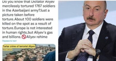 ԱվելինԲռնապետ Ալիևն անողոքաբար խոշտանգել է ադրբեջանական բանակի 1767 զինվորի։ Այս մասին թվիթերյան իր էջում գրել է ադրբեջանցի բլոգեր, «Դիկտատոր» հեռուստանախագծի
