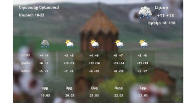 ԱվելինՀարավից հզոր ցիկլոնի ներթափանցմամբ պայմանավորված՝ մարտի 19-ին և 19-ի լույս 20-ի գիշերը Շիրակում, Լոռիում, Տավուշի նախալեռներում, Արագածոտնի, Կոտայքի, Վայոց ձորի