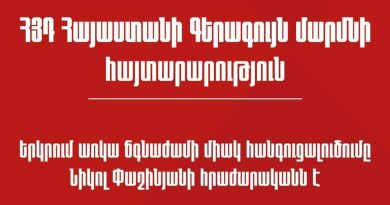 «ԱՄՆ դեսպանությունը հետևում է Երևանում ընթացող ցույցերին։ Մենք ցուցարարներին հորդորում ենք հավաքների ազատության իրենց իրավունքն իրացնել պատասխանատու կերպով՝ զերծ մնալով