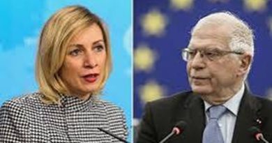 ԱվելինՌԴ ԱԳՆ պաշտոնական ներկայացուցիչ Մարիա Զախարովան հակառուսական հայտարարությունների պատճառով ԵՄ դիվանագիտության ղեկավար Ժոզեպ Բորելին անվանել է «օձ», գրում է ՏԱՍՍ-ը: