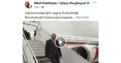 ԱվելինՀակոբ Կարապետյանը գրում է․ «Արժե Սիրելի Առաջնորդին տեղեկացնել, որ Ֆրանսիայի Հանրապետություն անունով պետություն չկա։ Եթե նա մեկնել է Փարիզ, ապա