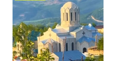 ԱվելինՇուշիի Սուրբ Ամենափրկիչ եկեղեցին՝ «վերականգնումից» հետո։ Այս լուսանկարը Ադրբեջանի կողմից պետական մակարդակով իրականացվող մշակութային ցեղասպանության վառ ապացույցներից մեկն է։ Հայկական