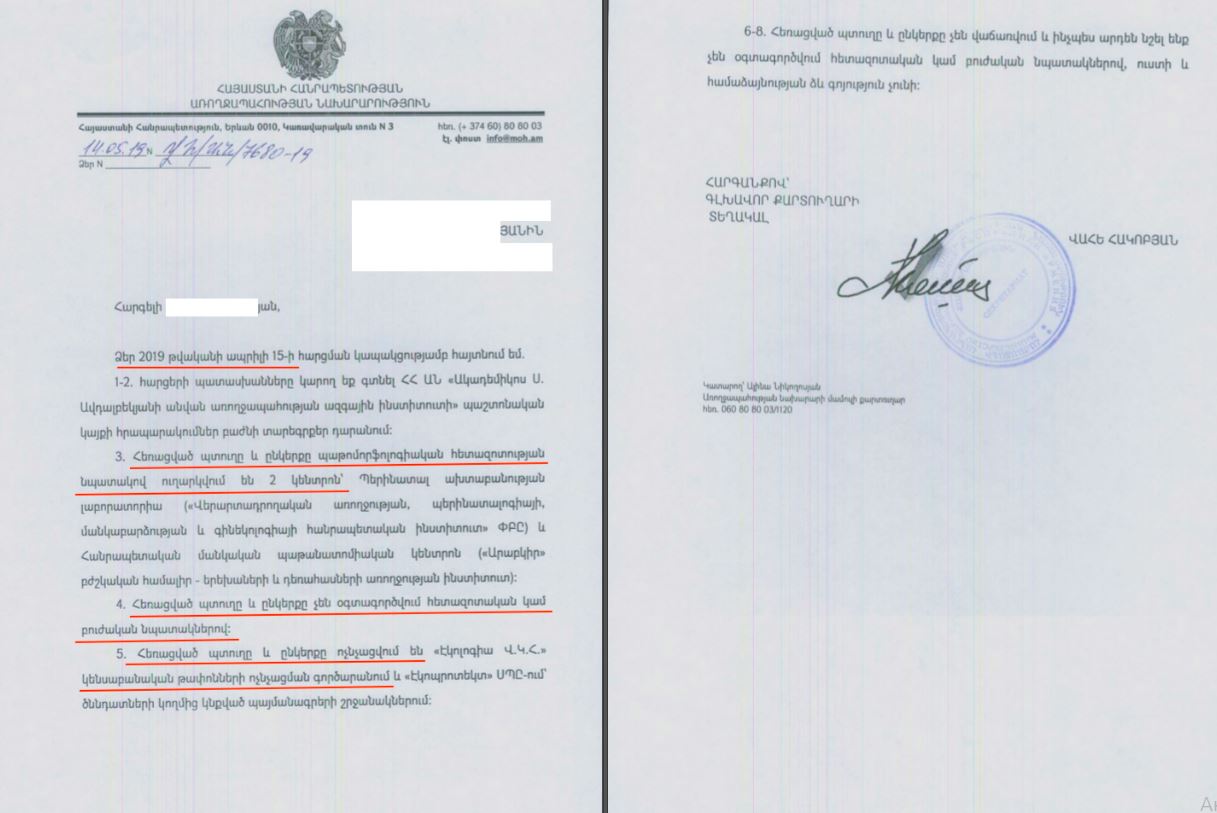 «Դեղերի և Բժշկական տեխնոլոգիաների փորձագիտական կենտրոնը հաստատում է, որ որոշ պատվաստանյութեր պարունակում են գենետիկ նյութ։ Իսկ թե ինչ ազդեցություն է ունենում անհայտ ծագման օտար գենետիկ նյութը` ներթափանցելով հատկապես հղի կնոջ կամ աճող մանկական օրգանիզմ, կարելի է միայն պատկերացնել։