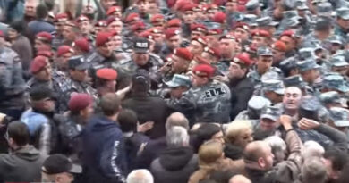 ԱվելինԳյումրու քաղաքապետարանի մոտ իրավիճակը պայթյունավտանգ է։ Բազմաթիվ կարմիրբերետավորներ բերման ենթարկում մարդկանց։ Հավաքվածներին հրմշտելով` նրանք մոտենալով քաղաքապետարանին՝ պատ կազմեցին։