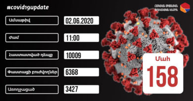 ԱվելինՀայաստանում հունիսի 4-ի դրությամբ հաստատվել է կորոնավիրուսով վարակման 697 նոր դեպք, վարակվածների ընդհանուր թիվը հասել է 11 221-ի: Ինչպես տեղեկացնում