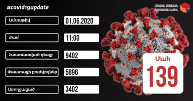 ԱվելինՀայաստանում հունիսի 1-ի դրությամբ հաստատվել է կորոնավիրուսով վարակման 210 նոր դեպք, վարակվածների ընդհանուր թիվը հասել է 9402-ի: Ինչպես տեղեկացնում է ՀՀ