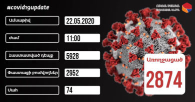 ԱվելինՀայաստանում մայիսի 22-ի դրությամբ հաստատվել է կորոնավիրուսով վարակման 322 նոր դեպք: Մահացել է 4 քաղաքացի: Վարակվածների ընդհանուր թիվը 5928 է,