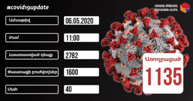 Հաստատվել է կորոնավիրուսային հիվանդության 163 նոր դեպք, ապաքինվել է ևս 24 մարդ: Հայկական միասնական տեղեկատվական կենտրոնի հաղորդմամբ, նախորդ օրը արձանագրվել
